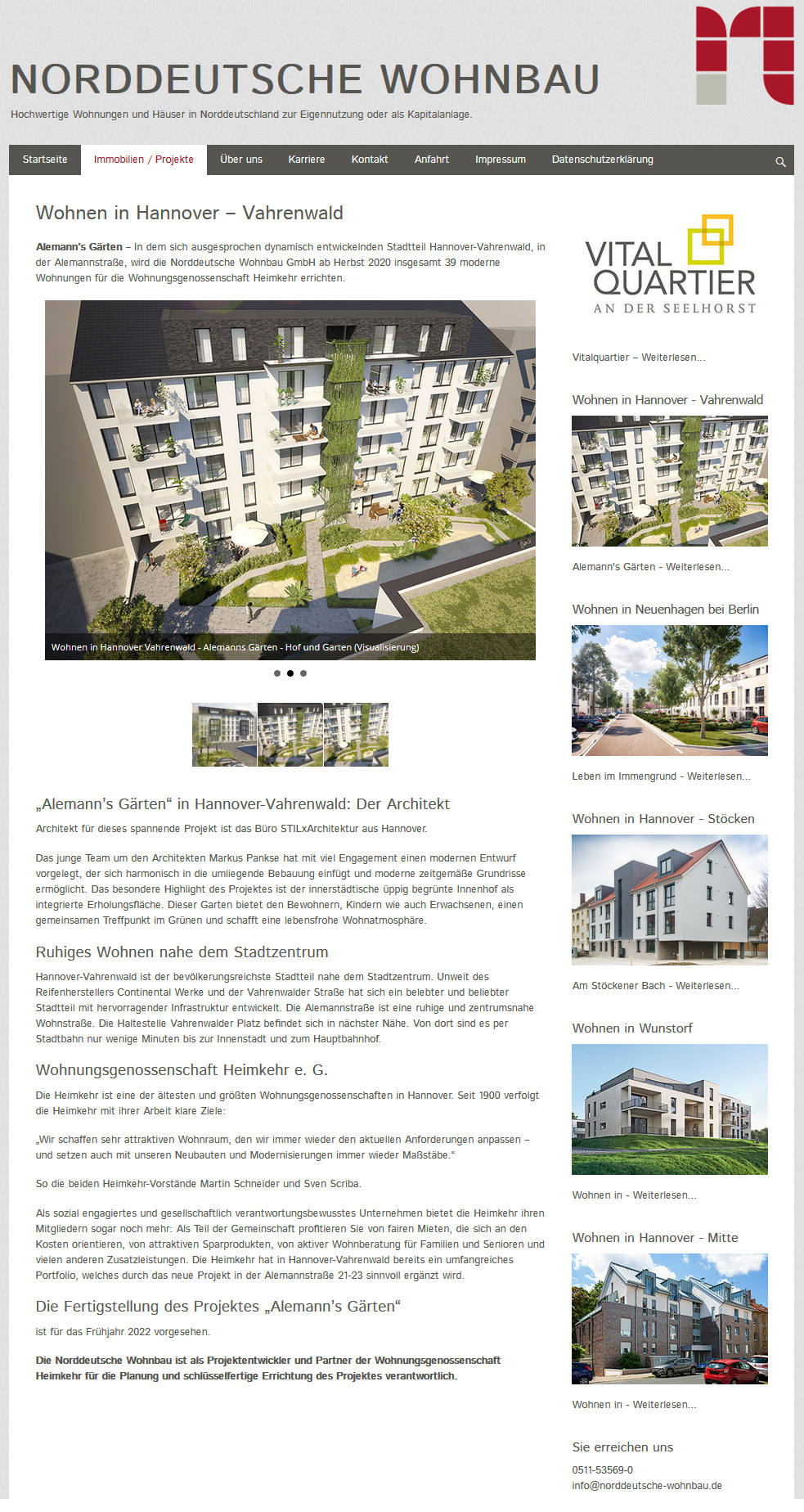 Auszug Internetseite Norddeutsche Wohnbau 07.10.2019